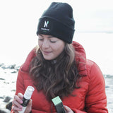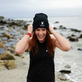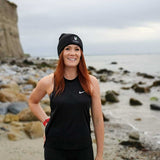 This branded black beanie hat is the perfect addition to any active outfit! Warm and comfortable, they are suitable for both men and women.